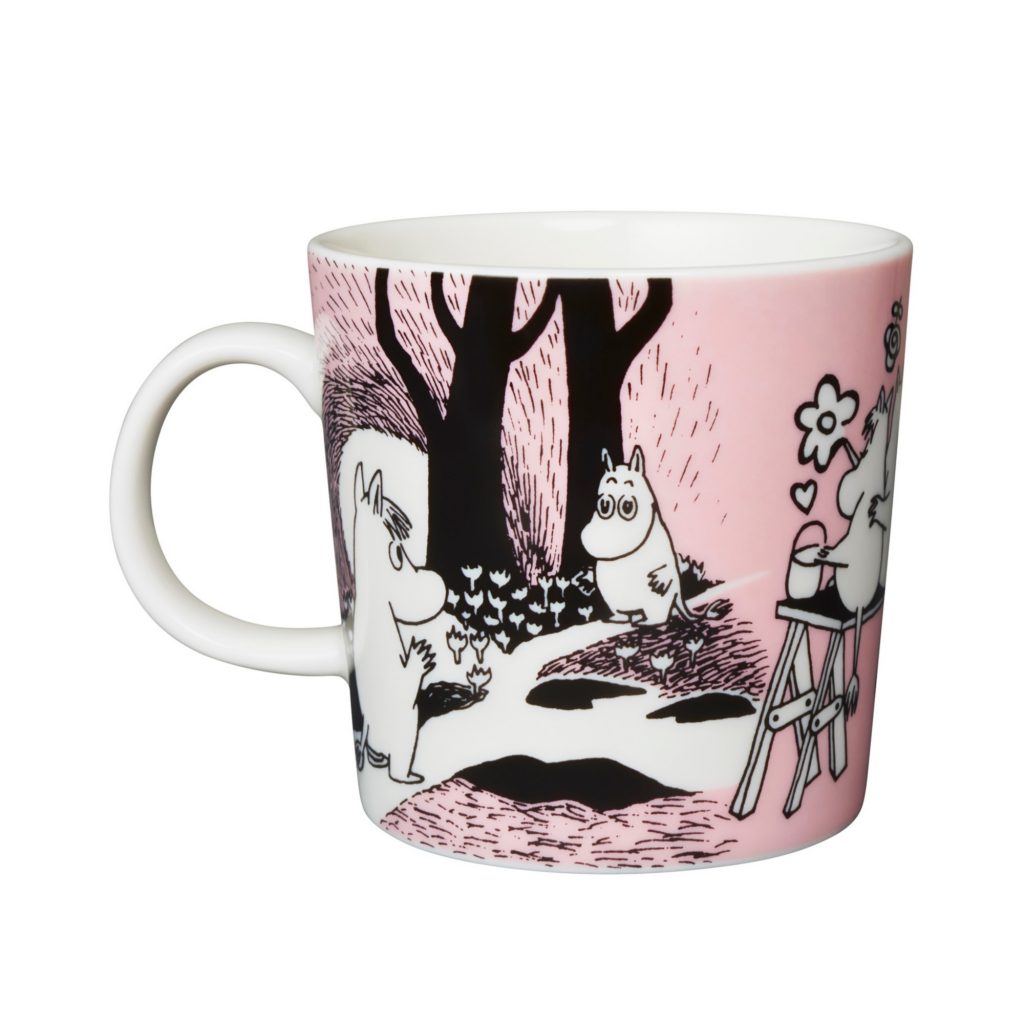 「ピンク(LOVE)は、1996年に登場したデザイン。相思相愛のムーミンとスノークのおじょうさんが優しいピンクで描かれています。