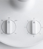 鳥かごをイメージした細く美しいスチール製のガード。 ガードクリップにはブランドロゴを配した特徴的な外観です。 自分専用にぴったりな卓上サイズ ベース部分はお皿状になっており、メガネ等の日常小物の置き場にぴったりです。 組立て不要なのですぐに使えて便利です。 3段階の風量調節 コンパクトでも風量のある羽根径25cmを採用。 弱・中・強の風量設定と最長3時間のOFFタイマー搭載されています。 簡単操作 2つのつまみだけの簡単操作。 向かって左がOFF TIMER設定用で右が風量調節用になります。 |