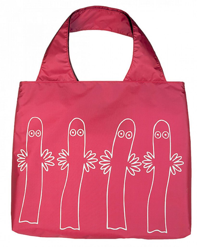 ショールームフィンランドのエコバッグは、ムーミンやその仲間の躍動感溢れる姿が描かれたエコバッグです。バッグを折りたたんで内ポケットに収納することができます。マチがあるので荷物が増えた場合にも活躍します。